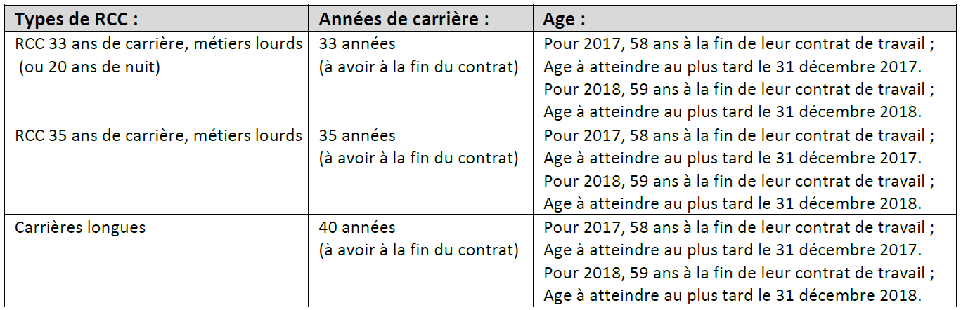 Les conventions relatives au RCC sont prolongées. Pour rappel, en plus de la RCC « normale » 3 types de RCC sont possibles :