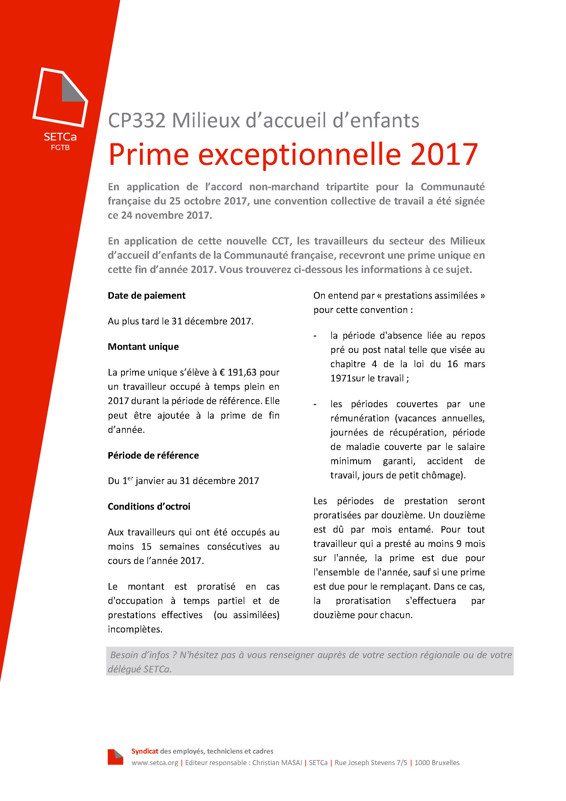 Milieux d’accueil d’enfants: Prime exceptionnelle 2017 maisondesemployes2014 / 7 décembre 2017 Partager : Partager sur X(ouvre dans une nouvelle fenêtre) X Partager sur Facebook(ouvre dans une nouvelle fenêtre) Facebook J’aime chargement…