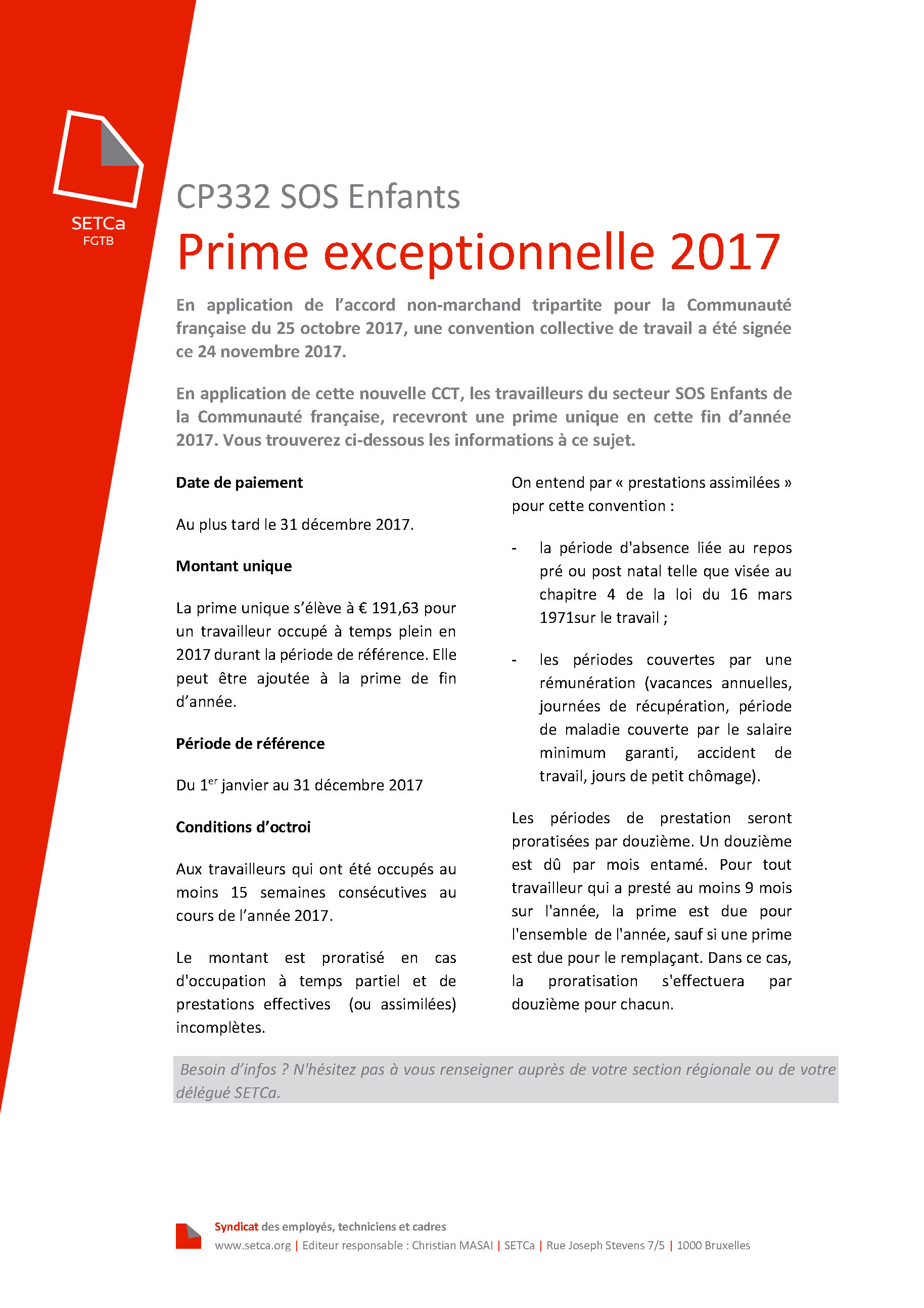 SOS Enfants : Prime exceptionnelle 2017 maisondesemployes2014 / 7 décembre 2017 Partager : Cliquer pour partager sur X(ouvre dans une nouvelle fenêtre) X Cliquez pour partager sur Facebook(ouvre dans une nouvelle fenêtre) Facebook J’aime chargement…