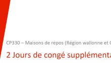 (Région wallonne et COCOM) 2 Jours de congé supplémentaires ! Ce vendredi 18 mai 2018, les partenaires sociaux ont signé une convention collective de travail ( CCT du 18 mai 2018) octroyant des jours de congés supplémentaires de repos à tous les travailleurs des maisons de repos. Nous nous en réjouissons ! Concrètement : Qui…