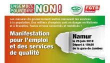 Les mesures du gouvernement wallon menacent les services à la population. Des milliers d’emplois sont en danger en Wallonie et à Bruxelles. Toutes et tous concernés et mobilisés ! Manifestation pour l’emploi et des services de qualité! Namur le 25 juin 2018 Départ à 10h30 de la gare de Jambes La réforme des APE du…