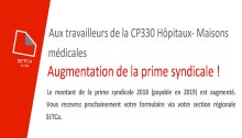 Aux travailleurs de la CP330 Hôpitaux- Maisons médicales Augmentation de la prime syndicale ! Le montant de la prime syndicale 2018 (payable en 2019) est augmenté. Vous recevrez prochainement votre formulaire via votre section régionale SETCa. Quels sont les nouveaux montants applicables pour la prime 2018 ? – € 100 pour les affilié·e·s payant une…