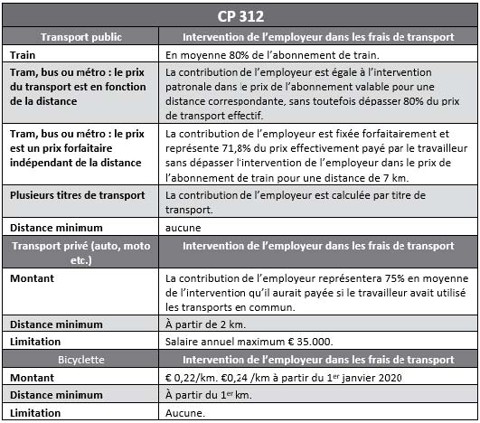 Dans le secteur du commerce une intervention de l’employeur est également prévue pour les travailleurs effectuant le chemin du travail à bicyclette et dans les commissions paritaires 202, 311, 312 pour les déplacements avec un moyen de transport privé (véhicule propre par exemple).