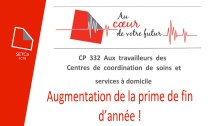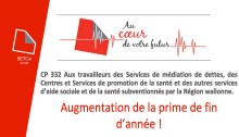 CP 332 Aux travailleurs des Centres de coordination de soins et services à domicile Augmentation de la prime de fin d’année! Enfin la concrétisation complète de l’Accord social wallon 2018-2020 ! Après l’augmentation de la prime syndicale, les interlocuteurs sociaux ont signé ce 18 octobre 2019 la convention collective de travail pour augmenter la prime…