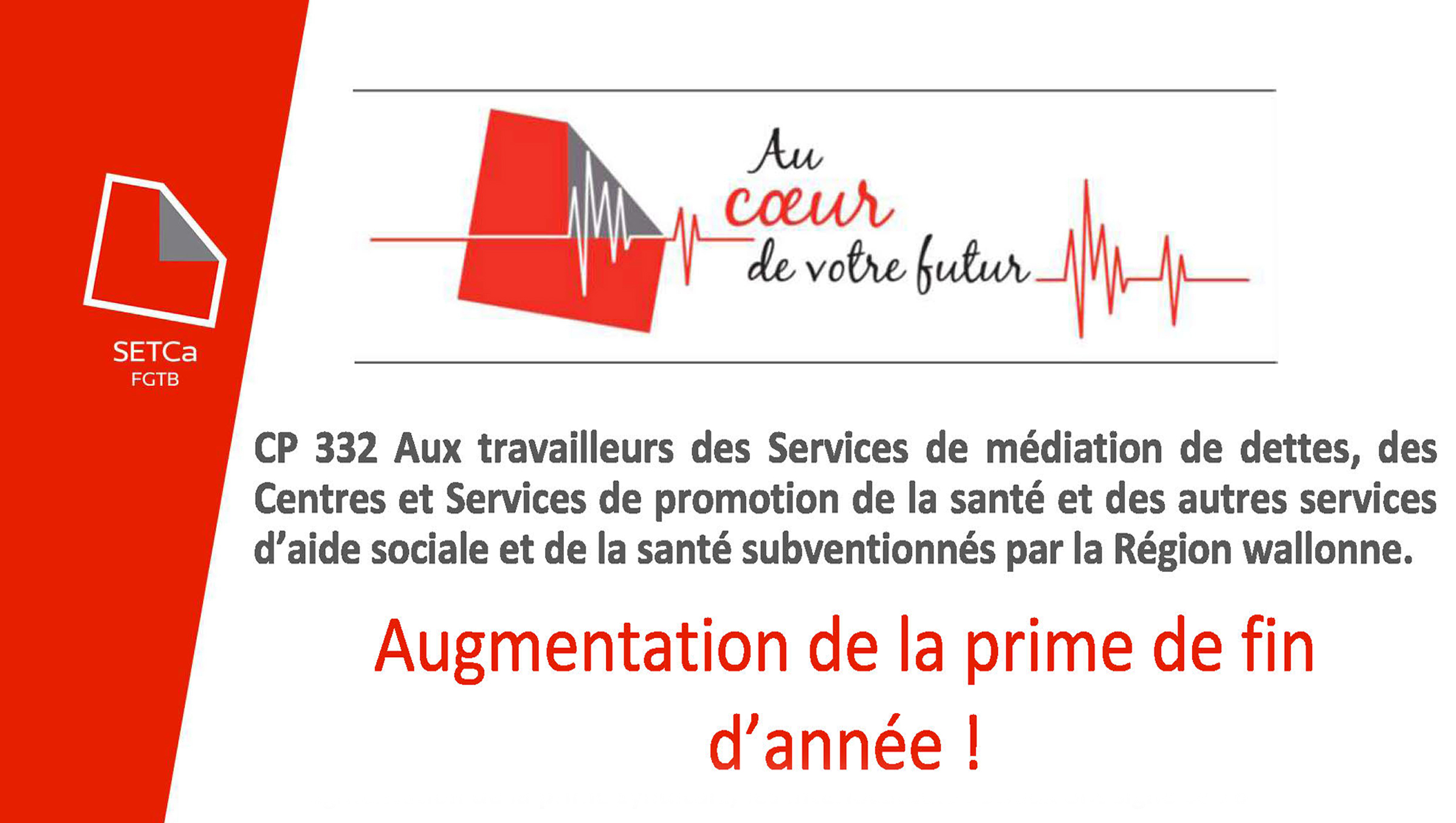 L’allocation de fin d’année se compose d’une partie forfaitaire: € 364 en exécution de l’accord non marchand wallon 2018 – 2020!