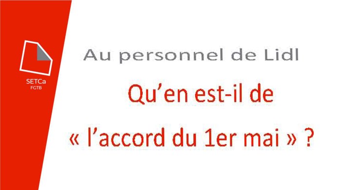Comme vous vous en souviendrez, après la grève des travailleurs il y a 18 mois parce que la charge de travail n’était plus tenable, le SETCa, contrairement à certains autres syndicats, n’a pas voulu entendre parler d’une proposition de la direction permettant à chaque filiale Lidl de planifier 42 heures en plus « pendant 6 mois ». HEUREUSEMENT que nous, le SETCa, n’étions pas d’accord avec cette formulation. Grâce à votre solidarité massive, nous sommes parvenus à un accord permettant de conserver ces 42 heures en plus jusqu’à ce qu’un accord ait été trouvé à propos d’une nouvelle organisation du travail permettant de réduire la charge de travail dans la même mesure. Sur le terrain ont entretemps eu lieu de nombreuses discussions sur l’application ou non de ces 42 heures de plus. C’est pourquoi, à notre demande d’ailleurs, la direction a fait savoir dans une communication au personnel que les 42 heures DOIVENT toujours être appliquées à ce jour. Nous sommes à présent 18 mois plus tard et que constatons-nous…