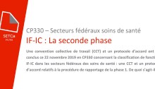 IF-IC: La seconde phase Une convention collective de travail (CCT) et un protocole d’accord ont été conclus ce 22 novembre 2019 en CP330 concernant la classification de fonctions IF-IC dans les secteurs fédéraux des soins de santé: une CCT et un protocole d’accord relatifs à la procédure de rapportage de la phase 1. De quoi…