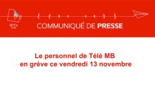 COMMUNIQUE DE PRESSE Le personnel de Télé MB en grève ce vendredi 13 novembre Dans le cadre du préavis de grève qui est venu à échéance ce lundi 9 novembre 2020, le personnel de la télévision locale Télé MB a décidé d’observer ce vendredi 13 novembre un arrêt de travail d’une durée de 24 heures.…