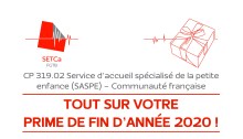Service d’accueil spécialisé de la petite enfance (SASPE) – Communauté française TOUT SUR VOTRE PRIME DE FIN D’ANNEE 2020 ! La prime de fin d ‘année fait partie des différents avantages auxquels vous avez droit en vertu d ‘une Convention Collective de Travail (CCT) négociée par vos représentants s~ndicaux . Considérée comme un salaire, la…