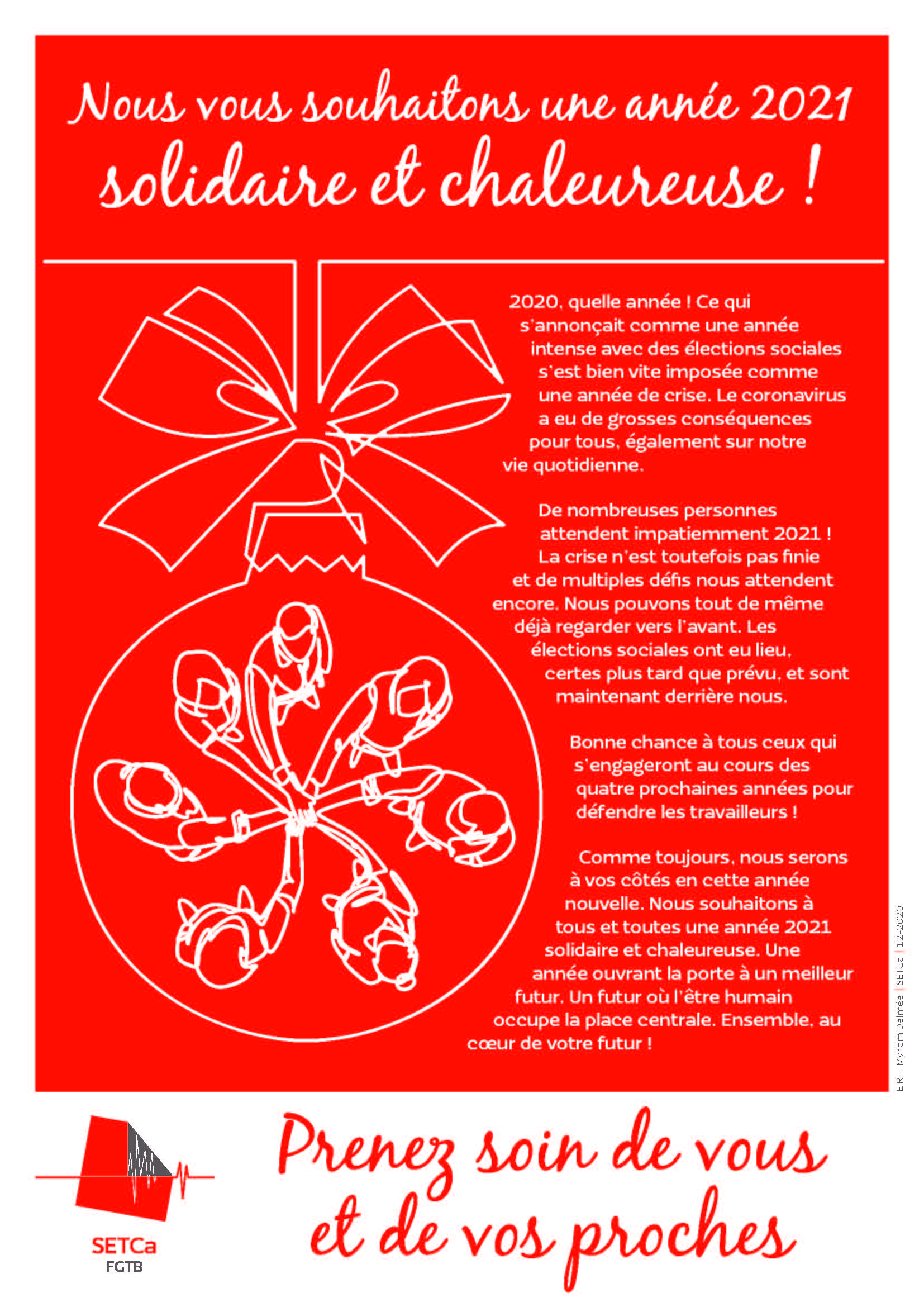 Meilleurs vœux pour 2021! maisondesemployes2014 / 5 janvier 2021 Toute l’équipe du SETCa Mons-Borinage vous présente ses meilleurs vœux et vous souhaite une année 2021 solidaire et chaleureuse! Partager : Cliquer pour partager sur X(ouvre dans une nouvelle fenêtre) X Cliquez pour partager sur Facebook(ouvre dans une nouvelle fenêtre) Facebook J’aime chargement…