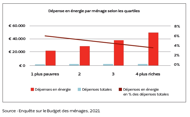 Si l’on prend l’exemple d’un ménage à faible revenus, la part des dépenses énergétiques sur leur budget est beaucoup plus importante que ce petit pourcentage et il s’agit là de dépenses qui sont difficilement compressibles. Comme ils ne disposent pas d’un « matelas » d’épargne, cela implique qu’ils doivent nécessairement réduire leur consommation ailleurs, sur d’autres produits, ce qui n’est pas sans impact sur la croissance économique.