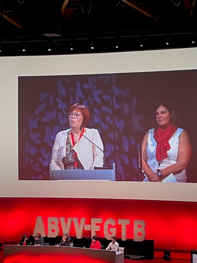Intervention de notre déléguée Dominique Harchy qui est montée à La Tribune pour dénoncer les conditions de travail dans le secteur de la santé et plus particulièrement durant cette pandémie et mettre en avant les revendications du SETCa pour améliorer les conditions de travail et salariales des travailleurs .