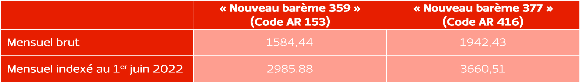 Cette perte est compensée par la création de nouveaux barèmes applicable au 1er septembre 2022 en remplacement des barèmes 359 et 377. L’AGCF n’ayant pas encore été adopté par le