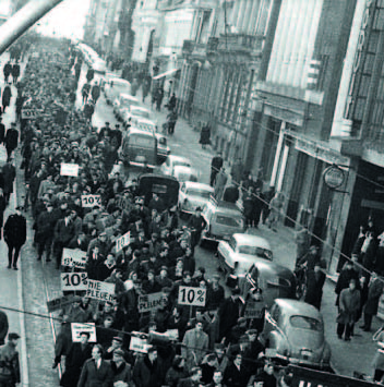 Après la Première Guerre mondiale, le mouvement syndical monte en fl èche. Les travailleurs s’affi lient, se mobilisent, sont obligés de mener des grèves et engrangent des victoires car le POB relaie leurs revendications : le 9 mai 1919, le suffrage universel est acquis pour les hommes de plus de 21 ans. Les femmes, elles, devront attendre 1948 pour jouir de ce droit ! Le 14 juin 1921, la journée des 8 heures de travail par jour est obtenue.