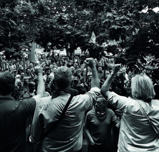 La FGTB travaille à la constitution d’un front commun élargi, avec d’autres syndicats et le monde associatif, afi n que notamment l’article 406 du code pénal ne soit plus appliqué en cas d’action collective. Manifester pacifiquement et exercer son droit de grève ne doit mener personne devant les tribunaux, ni en Belgique, ni ailleurs.