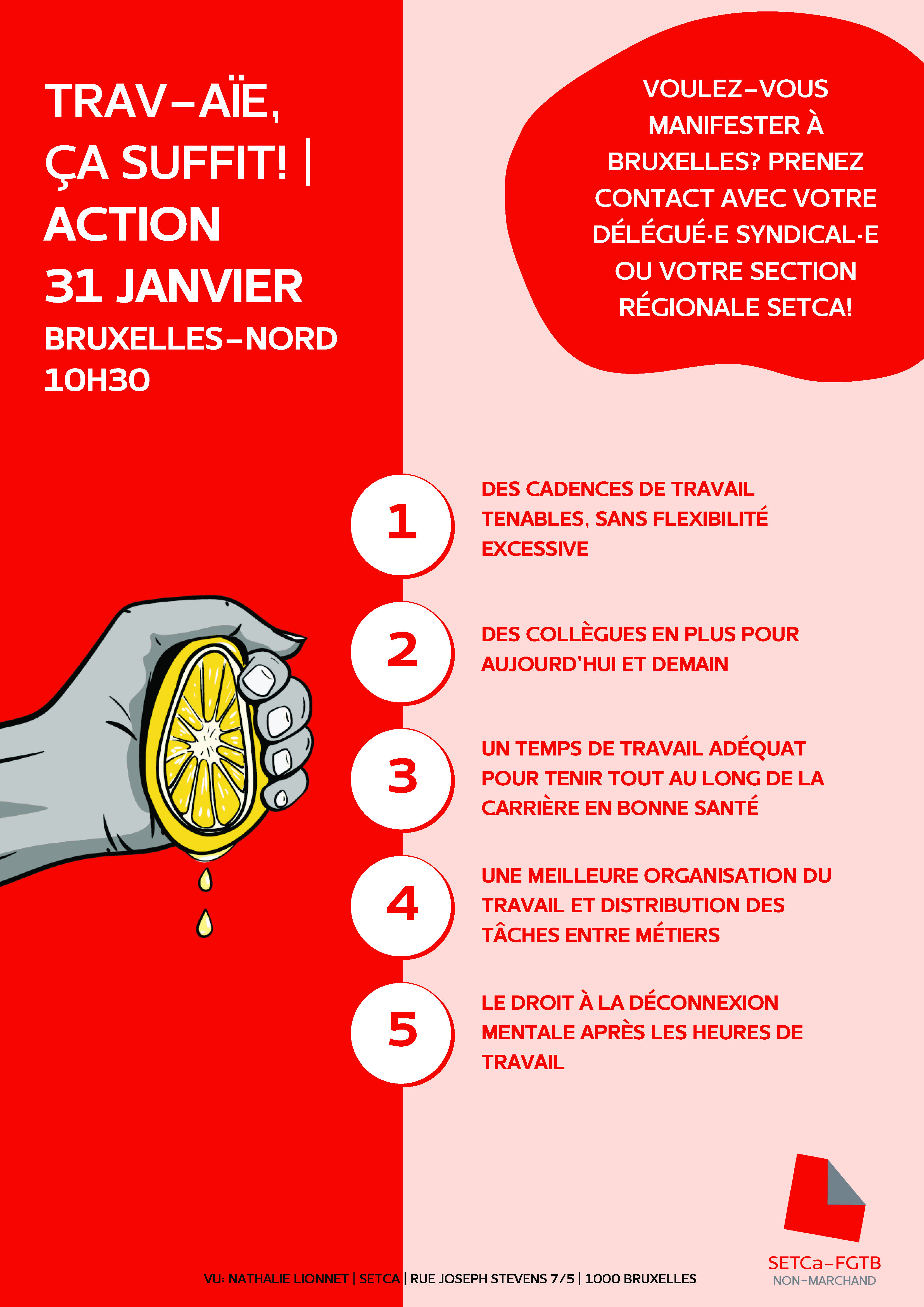 VOULEZ-VOUS MANIFESTER À BRUXELLES? PRENEZ CONTACT AVEC VOTRE DÉLÉGUÉ·E SYNDICAL·E OU VOTRE SECTION RÉGIONALE SETCA!