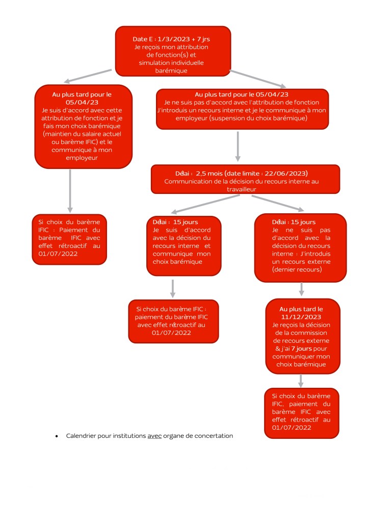 Nous y sommes enfin! La procédure d’attribution des fonctions doit démarrer dans votre institution/service. La date E, qui est la date d’attribution de fonction au travailleur, a été fixée au 1er mars 2023. Entre le 1er mars et le 8 mars 2023, vous devez recevoir votre attribution de fonction et la simulation salariale individuelle associée qui vous permettra de faire un choix éclairé entre le barème IFIC ou le maintien de votre salaire actuel. Si vous faites le choix du barème IFIC, vous recevrez des arriérés puisque ces nouvelles échelles salariales sont d’application avec effet rétroactif au 1er juillet 2022. On vous explique tout!