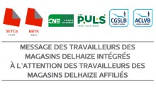 MESSAGE DES TRAVAILLEURS DES MAGASINS DELHAIZE INTEGRES A L’ATTENTION DES TRAVAILLEURS DES MAGASINS DELHAIZE AFFILIES L’électrochoc de l’annonce de franchisation des magasins intégrés nous a fait réaliser à quel point le groupe n’avait aucun respect pour les travailleurs et à quel point la recherche de profits pouvait se faire sur notre dos à toutes et…