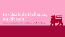 Solidarité avec les travailleurs ce 1er avril Dites non aux deals de Delhaize ! Début mars, Delhaize annonçait sa décision de franchiser ses 128 magasins intégrés. Cela signifie une cession à des indépendants, par laquelle les 9.000 travailleurs concernés seront transférés dans une commission paritaire pratiquant de moins bonnes conditions de travail et de rémunération.…