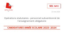 Opérations statutaires: personnel subventionné de l’enseignement obligatoire CANDIDATURES ANNEE SCOLAIRE 2023-2024 Pour les membres du personnel temporaires et/ ou définitifs à temps partiel1 qui remplissent les conditions, il est temps de penser à foire acte de candidature auprès du PO pour un engagement à titre temporaire et/ou définitif. Un rappel des dotes-clés aidera le membre…