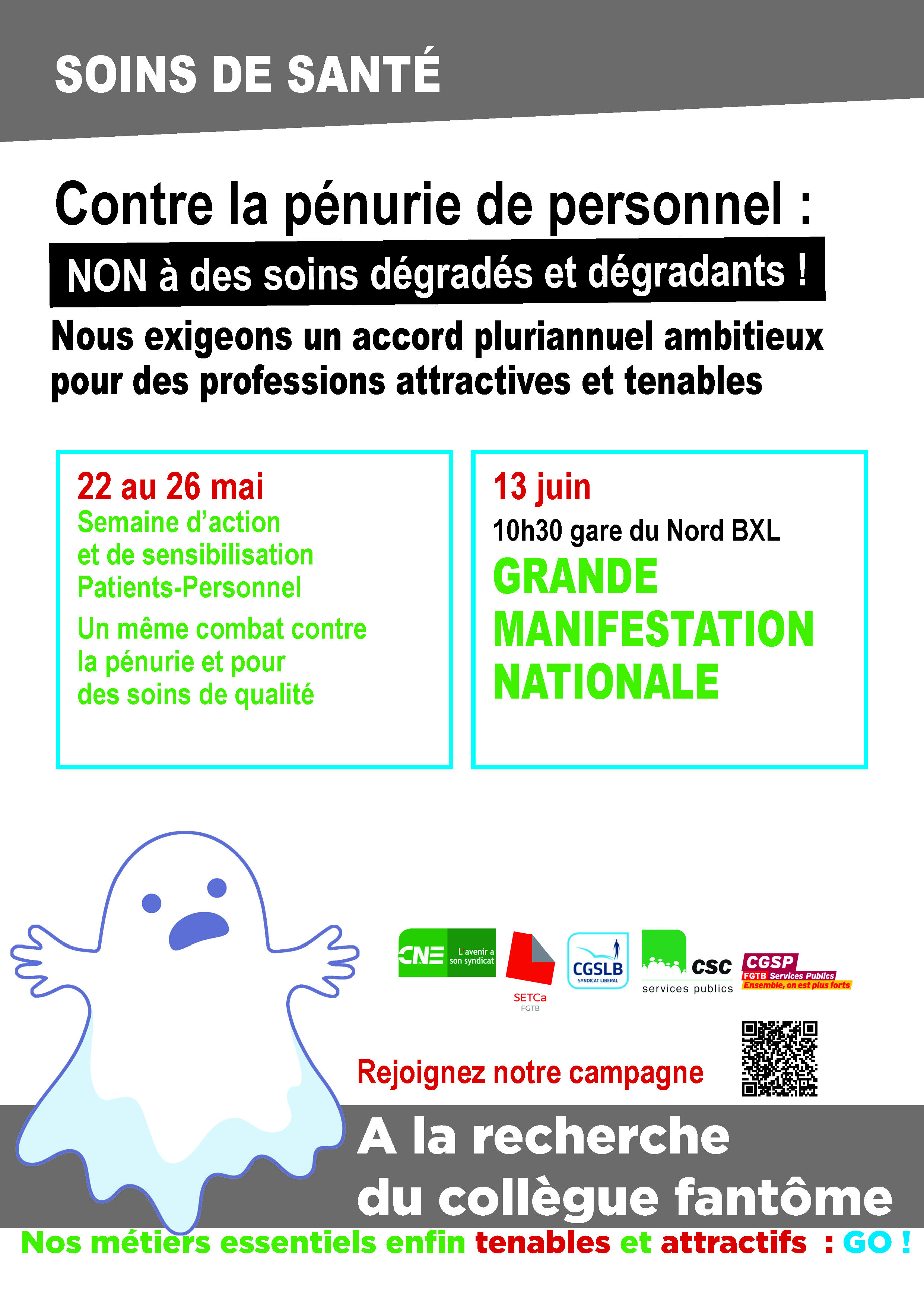 Un cahier de revendications a été déposé. Il vise à stopper le cercle vicieux de la pénurie, des mauvaises conditions de travail et de la perte d’attractivité des professions de Santé. Il reprend un ensemble de mesures dans les domaines suivants :