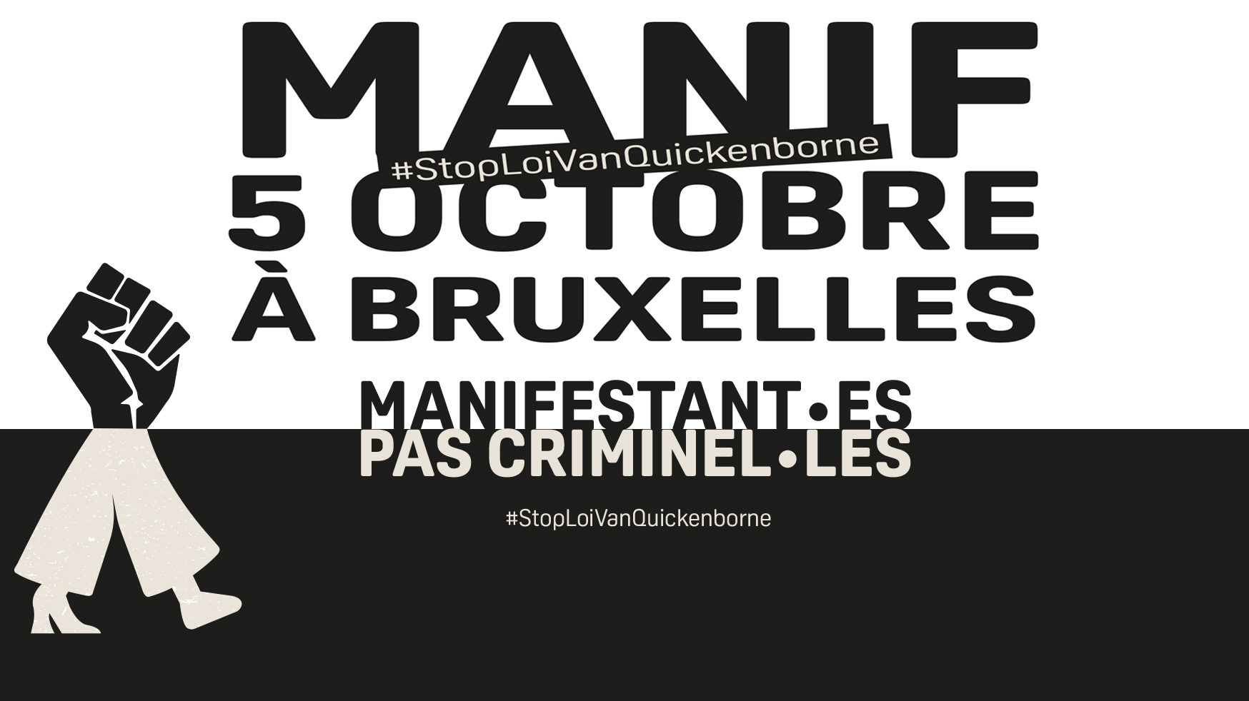 Dernière ligne droite pour empêcher le vote de la Loi Van Quickenborne par le Gouvernement Vivaldi. La coalition « manifestant·es, pas criminel·les » est plus que jamais mobilisée contre l’interdiction de manifester, inscrite dans le projet de loi. Cette loi menace directement un droit fondamental en démocratie : celui de protester.