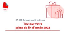 CP 330 Soins de santé fédéraux Tout sur votre prime de fin d’année 2023 La prime de fin d’année fait partie des différents avantages auxquels vous avez droit en vertu d’une Convention Collective de Travail (CCT). Les syndicats ont négocié ceci pour vous. La prime de fin d’année est considérée comme un salaire. Elle est…