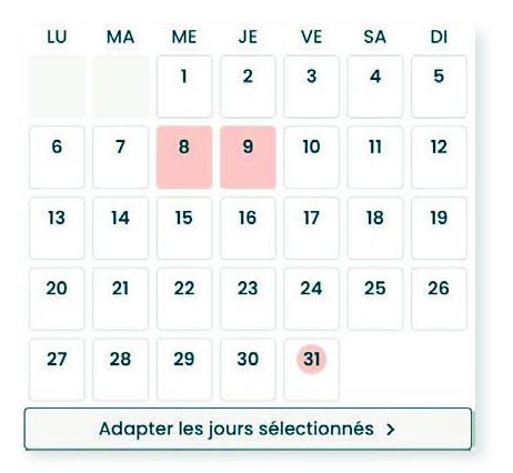 Sélectionnez les jours appropriés et cliquez sur « Adapter les jours sélectionnés ».