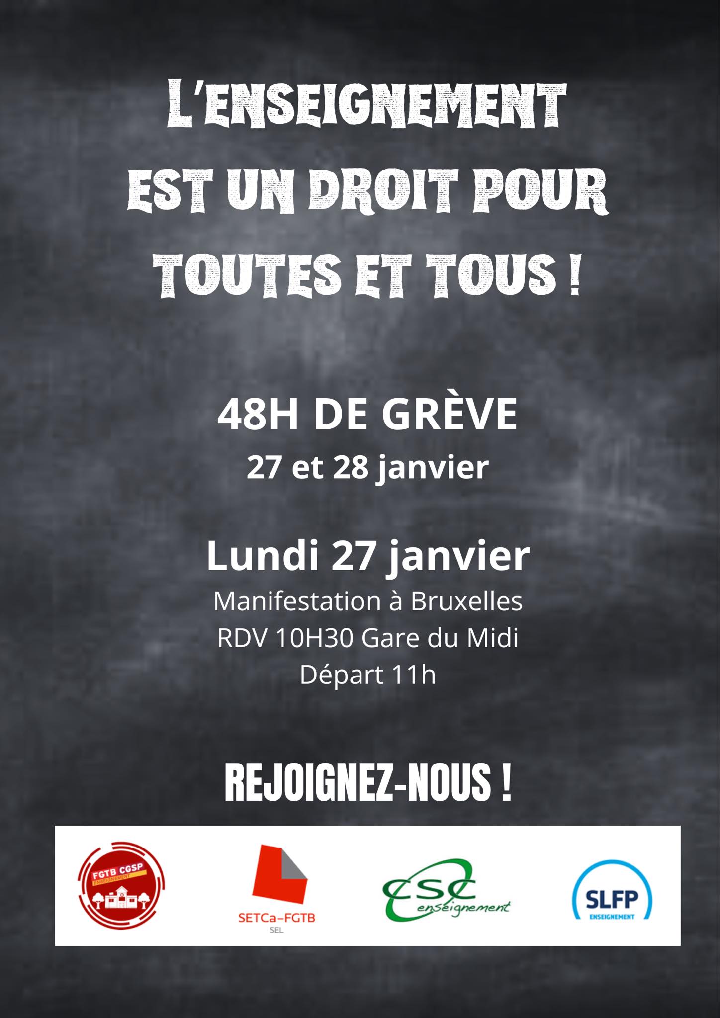 Enseignement: 48h de grève les 27 & 28 janvier !!! maisondesemployes2014 / 21 janvier 2025 Partager : Cliquer pour partager sur X(ouvre dans une nouvelle fenêtre) X Cliquez pour partager sur Facebook(ouvre dans une nouvelle fenêtre) Facebook J’aime chargement…