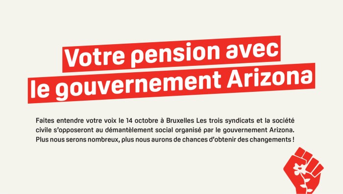 Faites entendre votre voix le 14 octobre à Bruxelles Les trois syndicats et la société civile s’opposeront au démantèlement social organisé par le gouvernement Arizona.